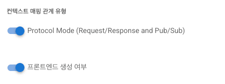 이때, Bounded Context 분리 기준 하단에 위치한 '프론트엔드 생성 여부'가 클릭 되었는지 확인 후, 생성이 진행되어야 합니다.