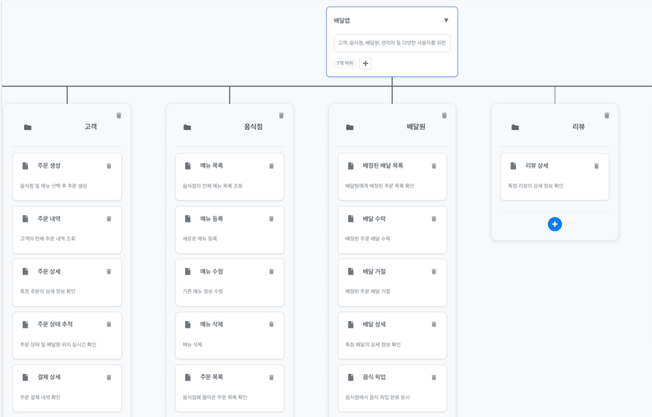 3) 생성이 완료되면 다음과 같이 음식 배달 앱의 전체 구조를 한눈에 볼 수 있는 사이트맵이 생성됩니다.